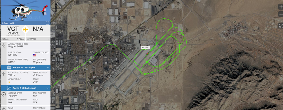 Sul posto, anche l'elicottero Huges 369FF del Dipartimento di Polizia di Las Vegas, a sorvolare l'intera base USAF di Nellis.